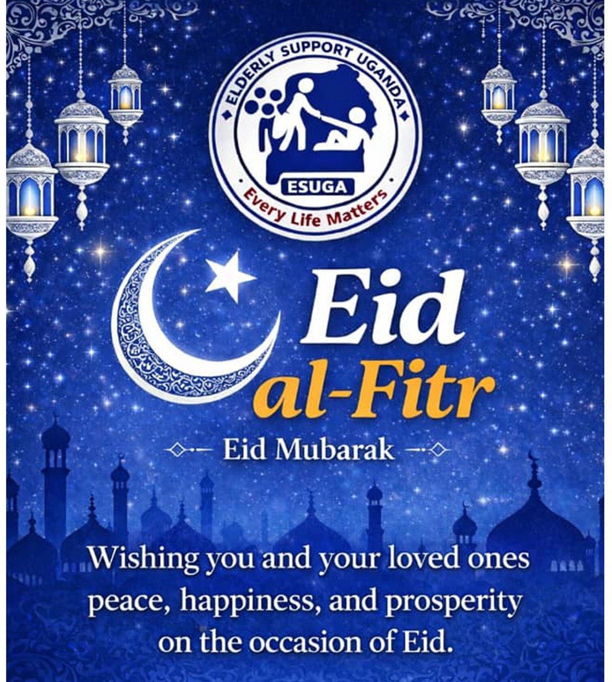 As the holy month of Ramadan ends, ESUGA Elderly Support Uganda extends its warmest wishes to all Muslims globally on the joyous occasion of Eid ul-Fitr. The Executive Director of ESUGA Dr. Rajab Idd Muyingo stressed that Eid is a time of gratitude, compassion, and togetherness, a moment to celebrate the strength of faith, the beauty of giving, and the blessings of community. After a month of fasting, reflection, and spiritual renewal, this day reminds us of the importance of kindness, generosity, and caring for one another.